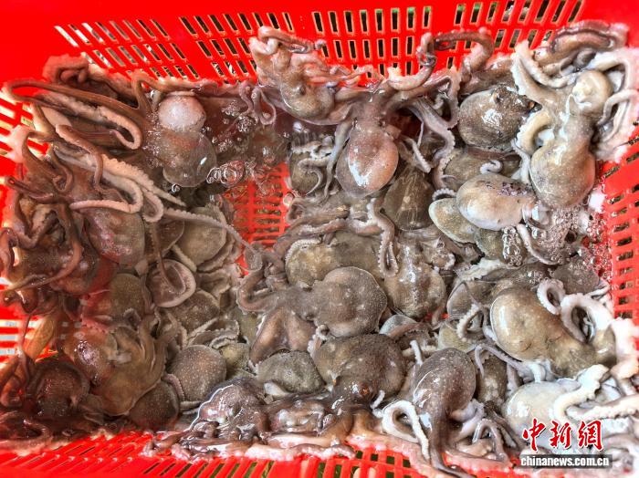 “这段时间经常有本地海域的‘八爪鱼’上市,像这种个头和鲜活度的,在菜市场上一般每公斤要卖80至100元(人民币,下同)。近期我们从附近装笼的渔民手上收货都收到有‘八爪鱼’。”近日,广东台山市赤溪镇专营海鲜的何雅丽介绍说,秋冬季正是当地人吃“八爪鱼”的好时机。