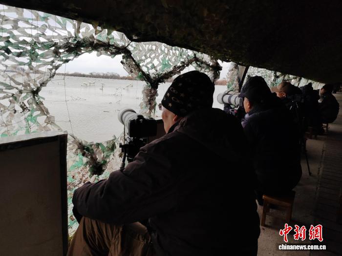 专程与朋友从香港到此观鸟的邓智聪正在2号摄影棚内向记者展示刚刚拍摄的作品。“雨中的白鹤也别有一番意境,水珠挂在鹤羽上,增添了仙气。”