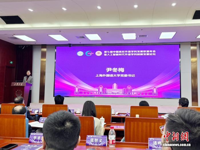 在主旨发言中,尹冬梅指出,上海外国语大学坚持守正创新、数智赋能,着力处理好“变”与“不变”、“内”与“外”、“通”与“专”三组关系,推动外语教育高质量发展。