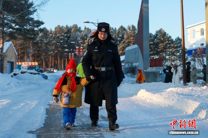中新网漠河1月1日电(张瑞鹏 孙铂程)1日,18名广西“小砂糖橘”来到“神州北极”黑龙江省大兴安岭漠河市北极村研学。这是广西“小砂糖橘”研学团第三年来北极村研学,黑龙江出入境边防检查总站大兴安岭边境管理支队北极边境派出所、观音山边境检查站的移民管理警察们再次开启“护娃模式”。