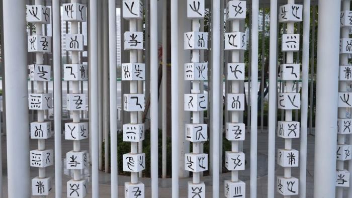 在开州路与绿城路交叉口东南角的造字园,整个公园以文字为主题,通过铺装、小品展现“诗情画意”意境。