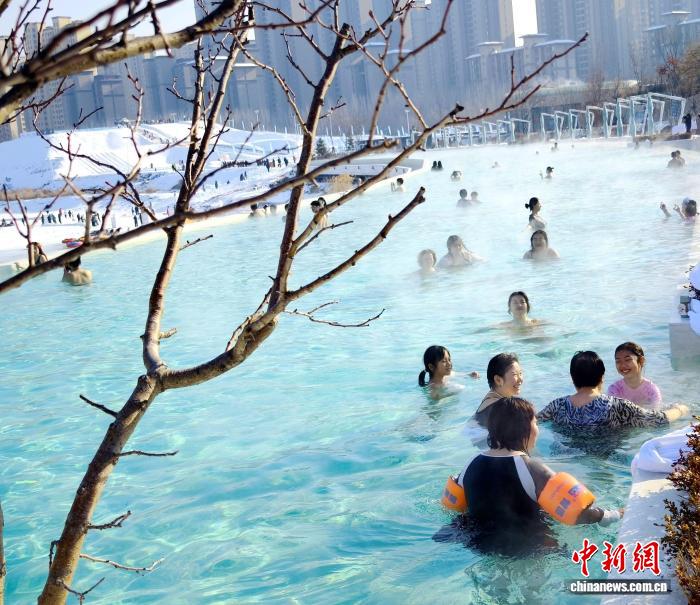 中新网沈阳1月6日电 (记者 赵桂华)数九寒天,游客身穿泳装,乘坐雪圈,从高空穿过120米长的雪滑梯,风驰电掣间滑入雾气缭绕的温泉里;在168米长的天际无边泳池里,人们沉浸式享受户外冬泳的酣畅与浪漫……1月6日,沈阳市第三届冰雪温泉文化嘉年华在沈北新区清河半岛冰雪户外戏雪区启幕,新增的三大网红项目惊艳亮相,吸引各地游客争相体验冬季沈阳特有的魅力。