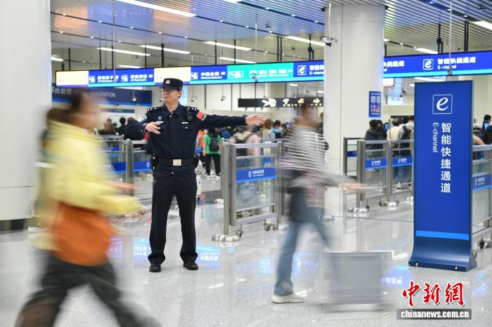“大家请走这边的智能快捷通道,慢慢来不着急。”24日上午,莲塘边检站民警蒋子豪手持扩音器穿梭人海,在他身后,莲塘边检站智能通关边检快捷通道高效运转,又一波次的瞬时客流高峰被平稳化解。