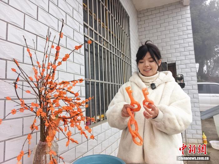 导读:中新网恩施3月26日电 (税浪 刘沩)海拔1800米的湖北省恩施市板桥镇大山顶村云雾缭绕,25岁的陈琴26日在家门口架起两部手机开启直播。身后桌上,塑料瓶里插着她用胡萝卜啃出的一树梅花。接下来一周,她要以牙为刀,用胡萝卜“啃”出一座微缩版天坛祈年殿。