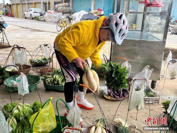 骑行爱好者罗丽娟是这里的熟客。从最初偶然路过到如今专程骑行前来,她在这个菜摊买菜已有七八年。“这里的蔬菜新鲜又实惠,卢大哥人也好,见我们没袋子,总会递上一个,没零钱他也热心帮忙兑换。”她说,“无人菜摊”如一座“温情驿站”,见证着人与人之间最宝贵的信任。