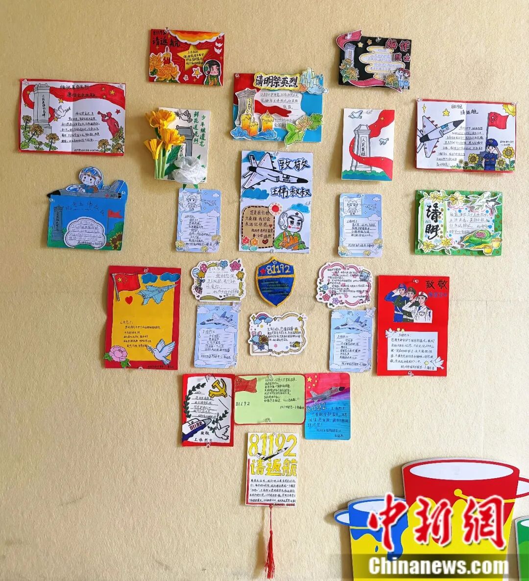 ——鲜花和战机、航母模型