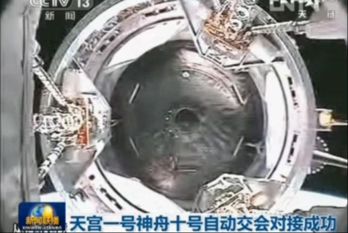 神舟九号载人飞船与天宫一号目标飞行器成功完成我国首次载人空间交会对接。随后,航天员景海鹏、刘旺、刘洋顺利进驻,这是中国航天员首次进驻在轨航天器。
