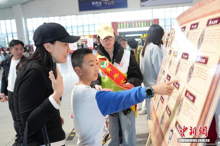 中新网福州4月5日电 (郑江洛)5日,“清明·话百家姓”主题文化体验活动在福州火车站候车厅举办,将姓氏起源、闽台文化源流与清明旅客出行场景深度融合,以特色文化活动丰富旅客候车体验。