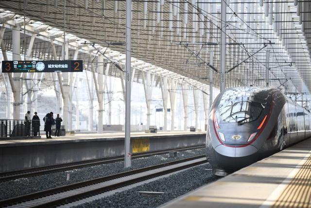 夕阳西下,余晖漫染,延安宝塔被镀上一层金边。远处,一列高铁飞驰而过。昔日地处偏僻的黄土高原小城,如今通达八方。曾经割裂空间、阻碍前行的沟壑,被发展的力量渐渐重塑。