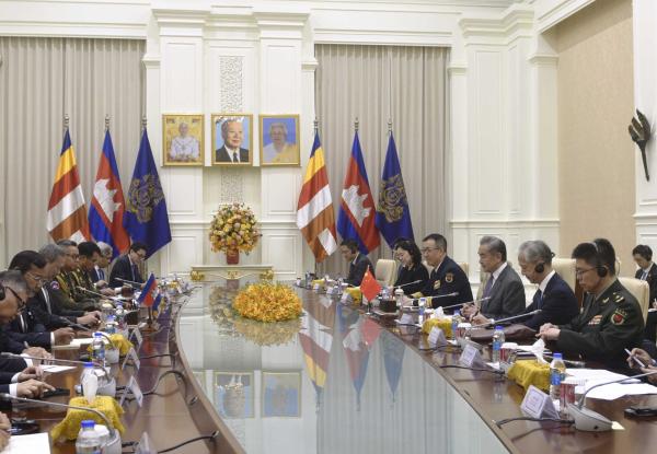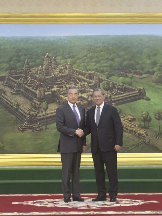 王毅说,中方愿同柬方沿着两国老一辈领导人开辟的中柬友好之路坚定不移地走下去,把命运共同体理念落实到两国关系的各方面。双方要保持高层交往,共同推进“工业发展走廊”“鱼米走廊”建设,助柬提升自主发展能力。跨境赌诈危害人民生命财产安全,要坚决打击,彻底铲除。双方要坚定在国际多边事务中相互支持,以中柬战略协作和战略韧性应对外部严峻挑战,携手维护公平正义。