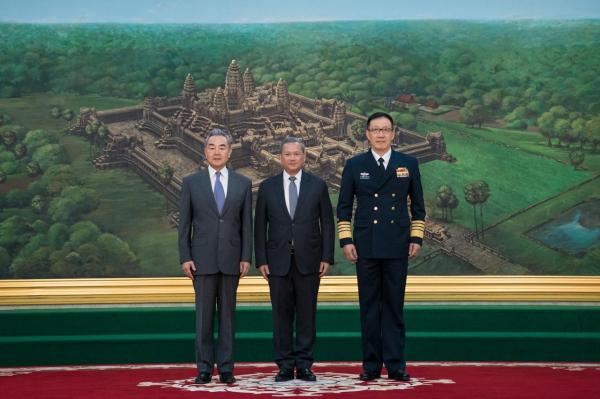 导读:当地时间2026年4月22日,柬埔寨首相洪玛奈在金边会见出席中柬外长、防长“2+2”战略对话机制首次会议的外交部长王毅、国防部长董军。