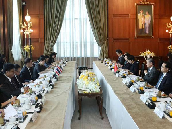 王毅说,中方始终把泰国置于周边外交重要位置,相互尊重,平等相待,守望相助,共同发展,促进各自经济建设,维护地区和平稳定。我们愿继续作泰可信赖的战略合作伙伴,支持泰新一届政府带领人民走好符合自身国情的发展道路,推动构建更为稳定、更加繁荣、更可持续的中泰命运共同体。相信泰方将继续旗帜鲜明支持中国和平统一大业。双方要保持高层交往,增进政治互信;加强发展战略对接,启动制定新版五年行动计划;加大打击跨国犯罪力度,彻底铲除赌诈毒瘤;密切多边协作,共同落实四大全球倡议。