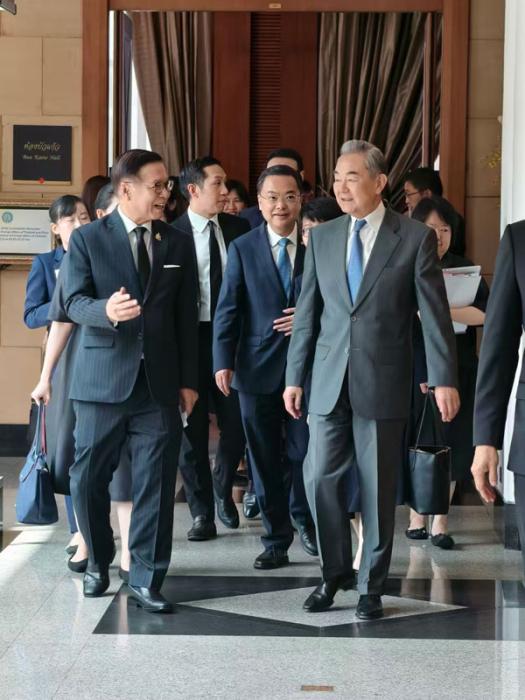 王毅表示,中方历来主张通过对话而非武力解决国与国分歧,希望泰方与柬埔寨展现克制包容,营造对话环境,巩固停火态势,恢复双边接触,尽早解决边境争端,维护和平稳定环境。作为泰柬共同的朋友,中方愿继续为双方重建互信、改善关系搭建平台。