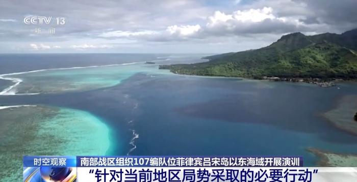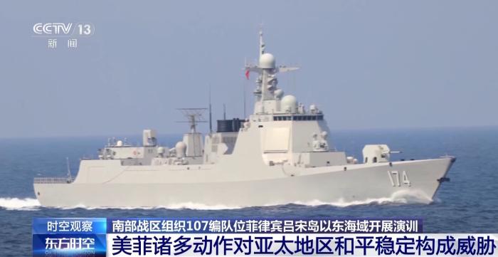 南部战区24日发布:近期,中国人民解放军南部战区组织107编队位菲律宾吕宋岛以东海域开展演训活动,重点进行实弹射击、海空协同、快速机动、航行补给等演练,检验一体化联合作战能力。这是针对当前地区局势采取的必要行动,符合相关国际法和国际实践。战区部队将根据安全形势需要,常态组织有关军事行动,维护国家主权安全和地区和平稳定。