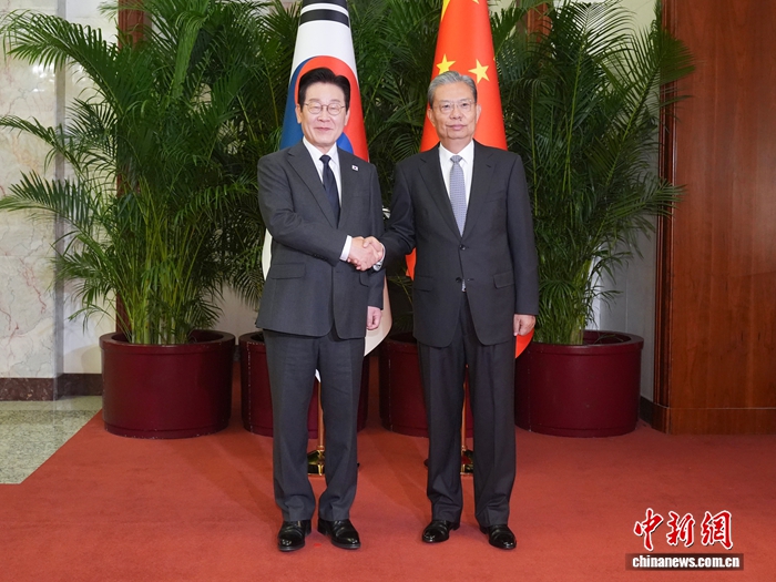 在会见李在明时,赵乐际表示,中韩建交30多年来,友好合作是中韩关系的鲜明底色。习近平主席昨天同总统先生举行会晤,为中韩关系下一步发展把舵定向,规划了新的蓝图。中方愿同韩方一道,落实好两国元首重要共识,坚定睦邻友好,深化互利合作,夯实民意基础,推动中韩战略合作伙伴关系行稳致远。中国全国人大愿同韩国国会保持高层交往良好势头,加强多层级、多领域沟通合作,为两国互利合作提供法治保障。