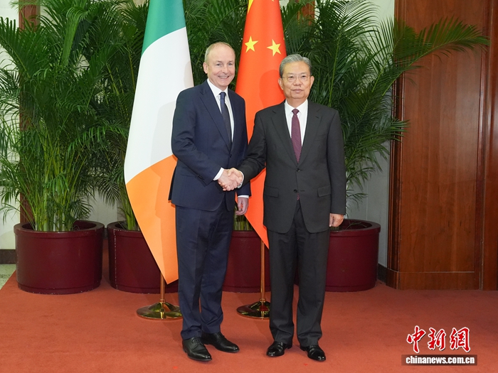 在会见马丁时,赵乐际表示,中国和爱尔兰传统友好。两国建交40多年来,始终相互尊重、平等相待,双边关系稳健发展。习近平主席昨天同总理先生举行会见,擘画了两国关系发展新的蓝图。中方愿同爱方一道,落实好两国领导人重要共识,增进相互理解和信任,深化互利共赢合作,推动中爱互惠战略伙伴关系取得更大发展。中国全国人大愿同爱尔兰议会加强沟通交流,深化立法、监督和治国理政经验交流互鉴,助力两国务实合作。