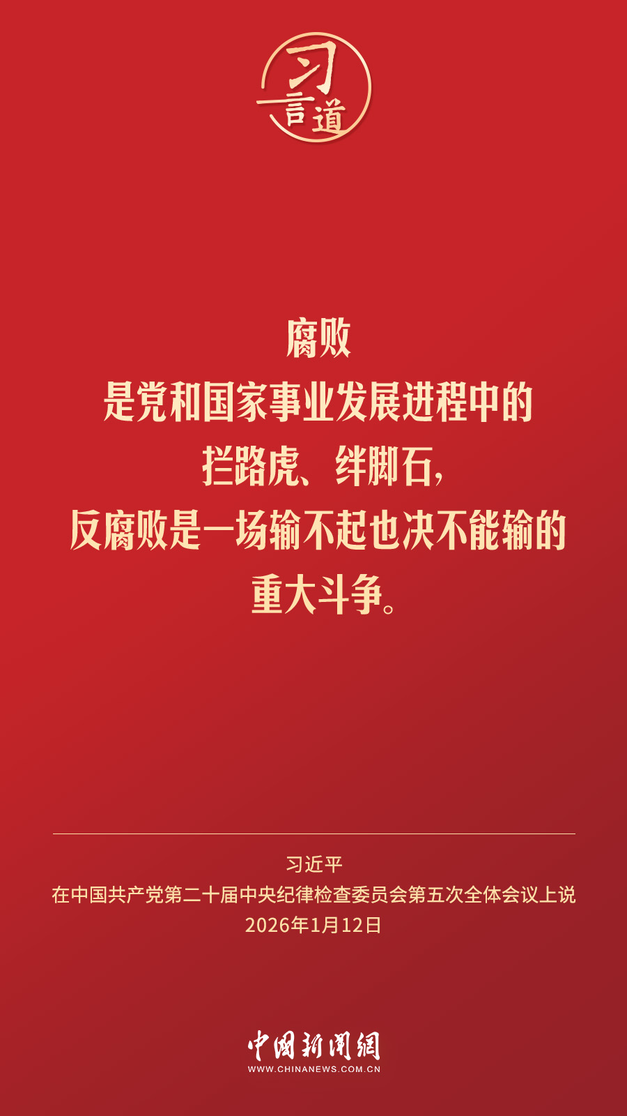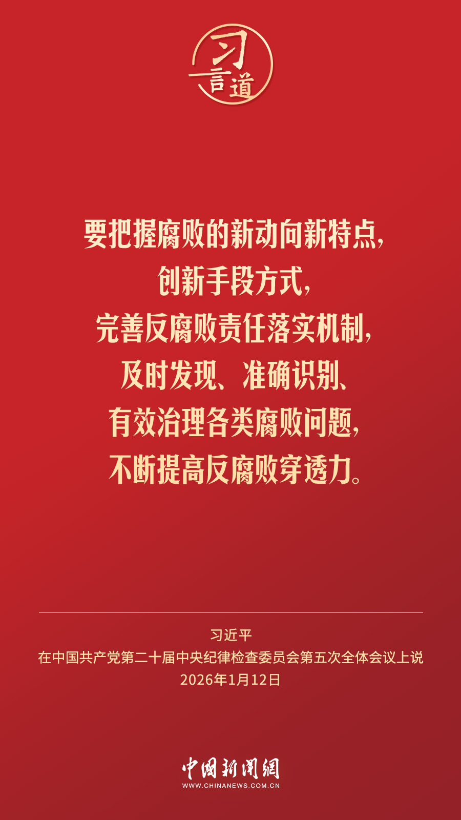 1月12日,中共中央总书记、国家主席、中央军委主席习近平在中国共产党第二十届中央纪律检查委员会第五次全体会议上发表重要讲话。他指出——