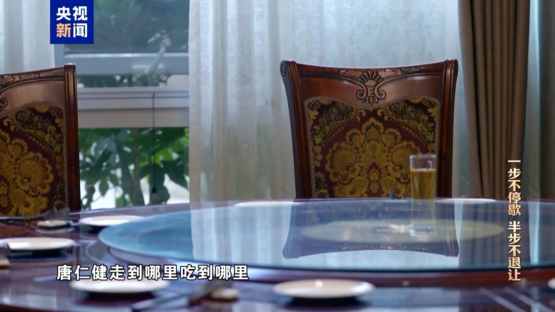 周典:唐仁健走到哪里吃到哪里,在广西、甘肃等地方任职期间,因为怕被别人发现,到酒店吃饭时往往戴着一顶帽子和一个口罩,后面主要到商人老板在高档公寓和别墅安排的隐蔽场所吃喝。