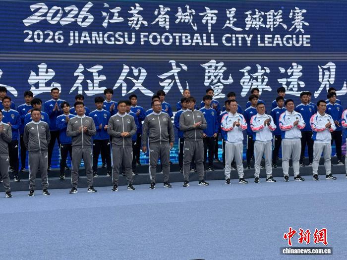 中新网宿迁4月8日电(刘林 谷华)8日上午,2026江苏省城市足球联赛宿迁队出征仪式在宿迁市奥体中心举行。球队全员亮相,数百球迷现场助威,新赛季征程正式开启。