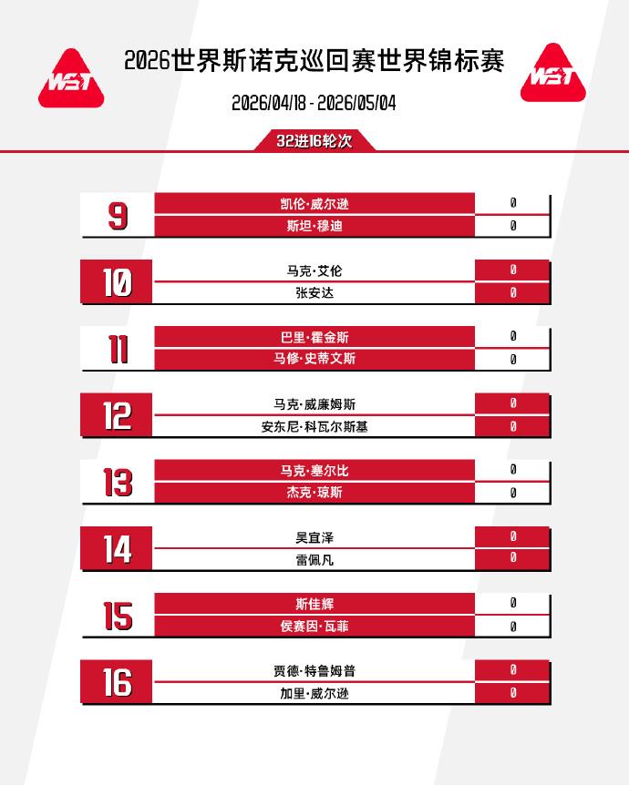 2026斯诺克世锦赛正赛签表