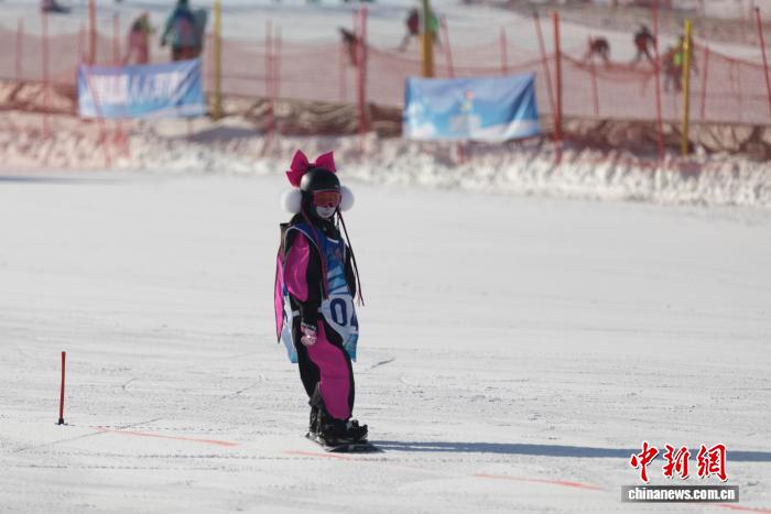 来自青海省的11岁参赛小选手张茏玥此次参加的是单板滑雪4级技术评定,已有8年“雪龄”的她酷爱滑雪运动:“我最喜爱滑下来的那一瞬间,非常凉爽与快乐。”