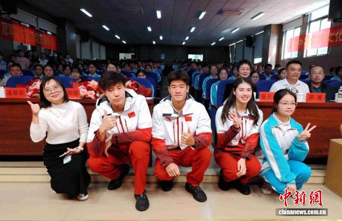 2026年“奔跑吧·少年”冠军进校园活动(白沙站)5日走进海南中学白沙学校,奥运冠军张雨霏、潘展乐、覃海洋与师生们分享个人成长经历。