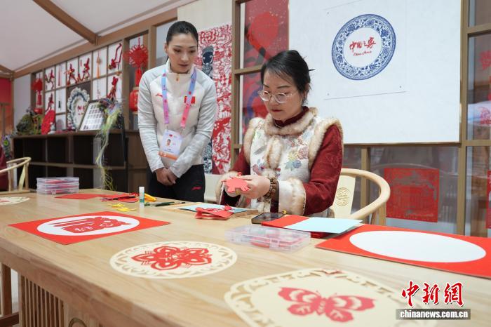 活动现场,不少来宾在非遗体验区体验糖塑、剪纸等项目,并在体育互动区体验相关科技产品。