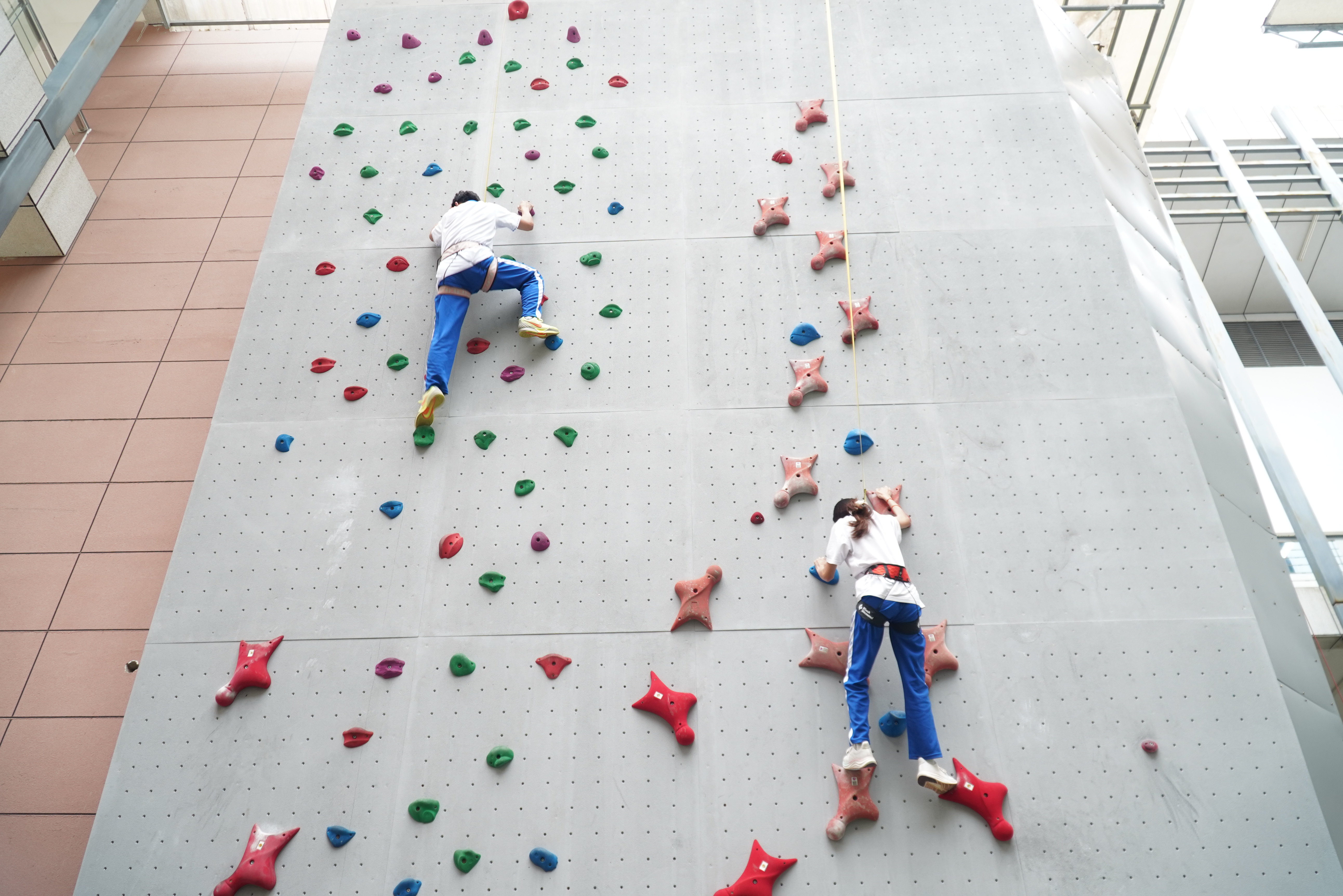 “冠军体育课”环节,学生们走进国家攀岩队训练场,开启了一场沉浸式的攀岩观摩与体验之旅。钟齐鑫、伍鹏等“特派体育老师”手把手指导学生掌握攀岩动作,在孩子们攀爬过程中及时给予暖心鼓励。在专业队员的陪伴下,孩子们勇敢地完成了人生中第一次伸手、第一次登高,训练场上传来的欢呼与呐喊声中,攀岩运动的独特魅力悄然在学子心中生根发芽。