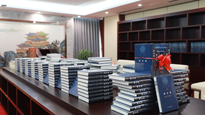游道勤常说:“修文库就像修水库,我们今天筑坝蓄水,是为了滋养几代人,为了让江右文脉绵延不绝。”在他身后的书架上,一排排深蓝色和古铜色的精装本文库图书整齐地陈列着。