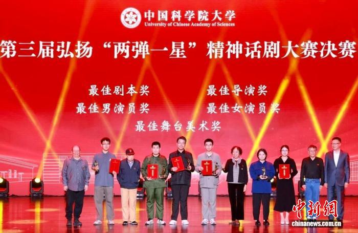 中新网北京4月26日电 (记者 孙自法)中国科学院大学(国科大)第三届弘扬“两弹一星”精神话剧大赛决赛4月25日晚在雁栖湖校区举办,共有来自20个培养单位及院系的20支队伍参赛。