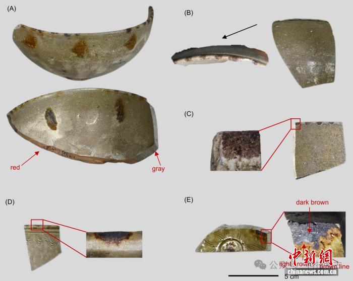 联合团队介绍说,长期以来,学界对早期青瓷褐彩装饰技术众说纷纭,或釉上彩,或釉下彩。在本项研究中,他们通过微观结构观察发现,褐彩层与青釉层深度融合,大量含铁晶体从釉面延伸至釉层内部,这一特征明确指向“烧前釉上彩”工艺,即先在未烧制的青釉表面施加含铁彩料,再经一次高温烧制完成。