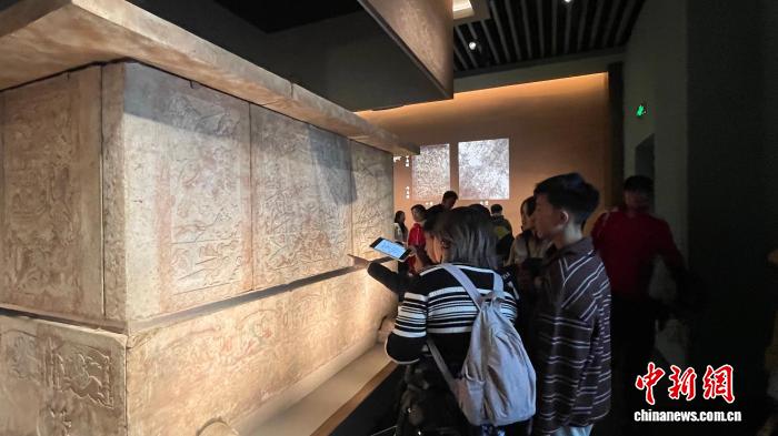 丝绸之路的开通,为马文化注入异域风情。在“民族熔炉”展厅,1999年出土于太原的虞弘墓石椁静静陈列。这座汉白玉石椁上浅浮雕50多幅画面,马形象见于出行、狩猎等题材中。