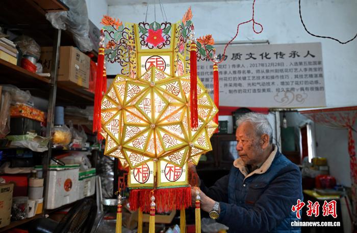 “最近做的一盏十五角无骨刻纸料丝花灯,花了一个多月时间。”年逾八旬的泉州花灯国家级非遗代表性传承人许谦慎说。他师从泉州刻纸大师李尧宝,习艺70载依然刀刻不辍。