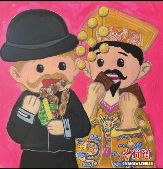 围绕中比友谊主题,参展比利时艺术家带来借鉴中国水墨画技法的三联画、以上海为主题的油画乃至惟妙惟肖的“锦鲤图”等,参展中国小画家带来“中西合馋”“熊猫漫游欧堡”“小于连嬉江南”等充满童趣的画作,与比利时艺术家成熟凝练的作品相映成趣。